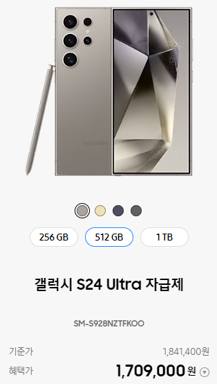 - 갤럭시 S24울트라 512GB - 1,709,000원