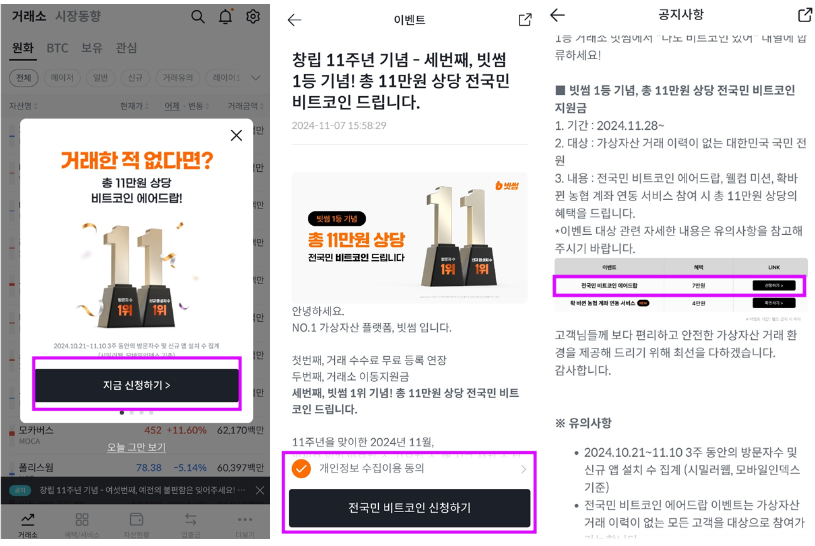 빗썸 이벤트 신청 주의사항