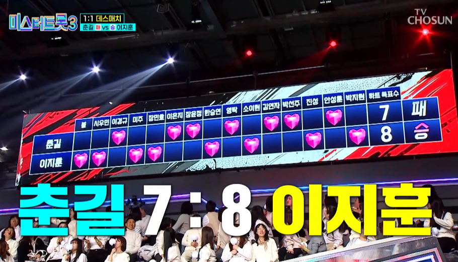 1:1 데스매치: 트로트 현역 임찬과 트로트 새내기 천록담의 대결이 가장 큰 주목을 받았습니다. 임찬은 '잃어버린 정'을, 천록담은 '님의 등불'을 선곡하여 서로 맞붙었고, 최종 승자는 천록담이었습니다. 춘길과 이지훈의 대결에서는 1점 차이로 이지훈이 승리했습니다.