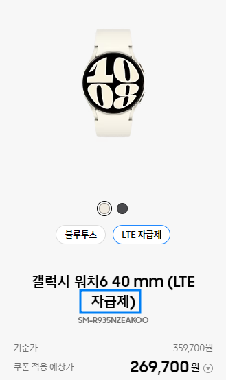 ● 갤럭시워치6 40mm 자급제 269,700원
