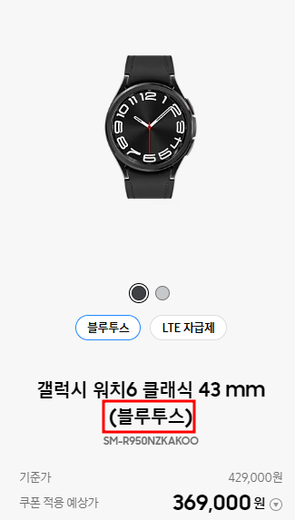 ● 갤럭시워치6 클래식 43mm 블루투스 369,000원
