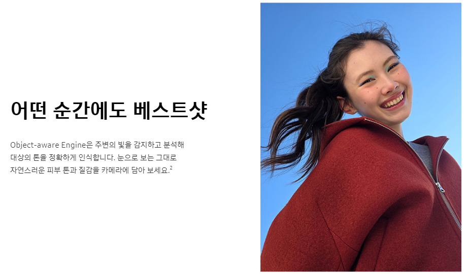 - 초고해상도 메인 카메라: 2억 화소의 메인 카메라를 탑재하여 초고해상도 사진 촬영이 가능하며, 10배 광학 줌과 100배 스페이스 줌을 지원합니다.