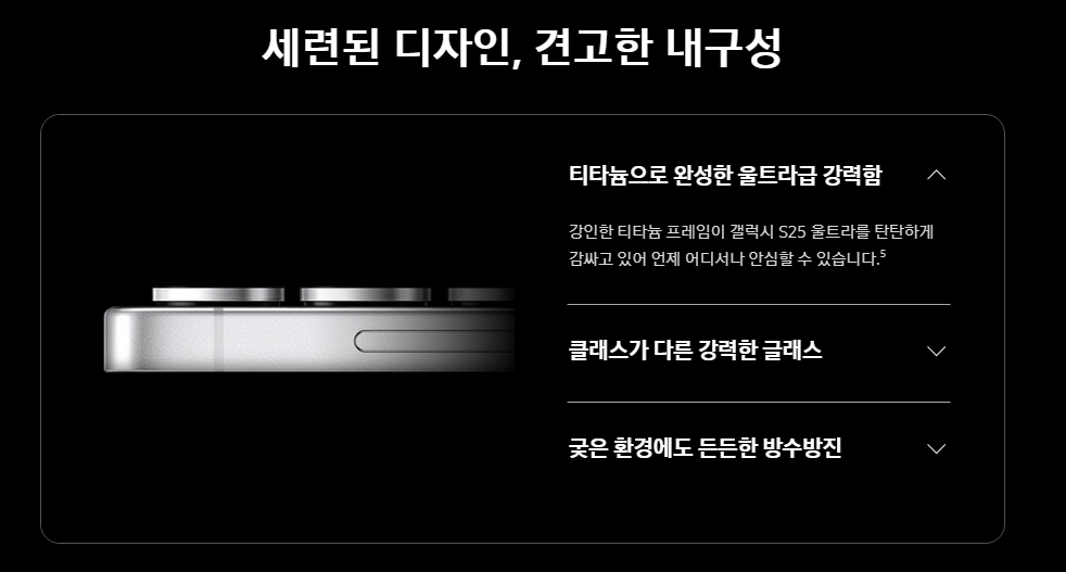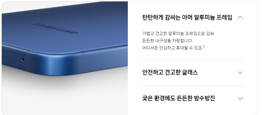 - 프리미엄 디자인: 더 얇은 베젤과 고급스러운 디자인, 방수 및 방진(IP68) 기능을 갖추고 있어 더욱 내구성이 강화되었습니다.