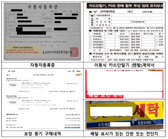 직접배달(세탁소,꽃집,도시락 업종) 증빙 서류