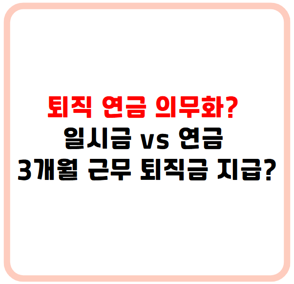퇴직 연금 의무화 일시금 vs 연금 3개월 근무 퇴직금 지급?
