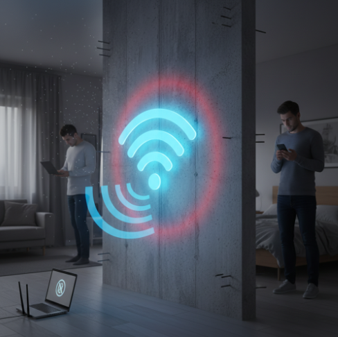 집 거실에 와이파이 공유기가 설치돼 있는데, 방에 들어가면 신호가 약해지거나 자주 끊기는 경우가 많습니다. 이는 공유기 불량이 아니라 집 구조와 전파 특성 때문에 발생하는 매우 일반적인 현상입니다.