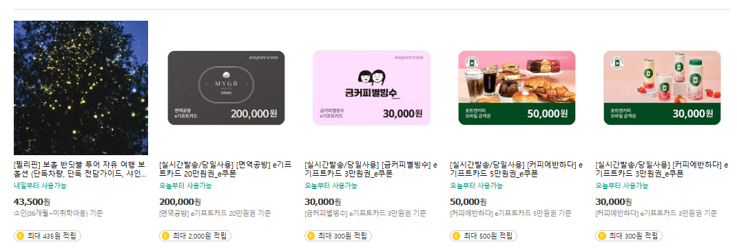 쿠팡트래블 2만원 쿠폰으로 기프티콘 구입